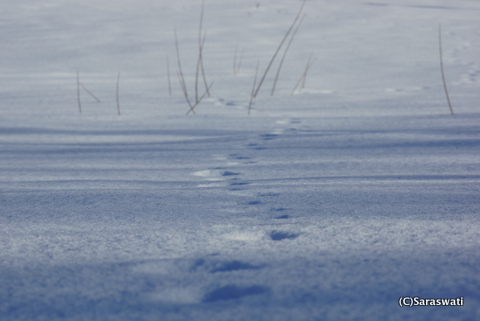 目に見えなくても、姿を見なくても、雪の中を歩いた動物の姿を思い描こう。