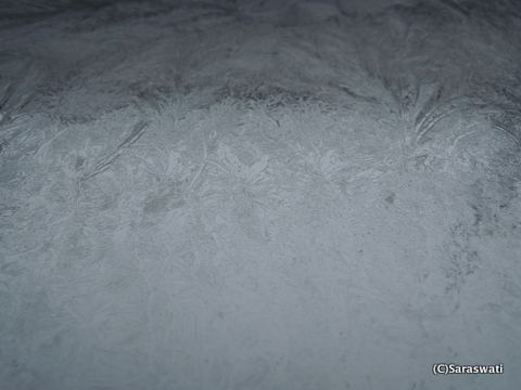 窓ガラスの結露も凍る寒さ、今年一番の冷え込みですって。