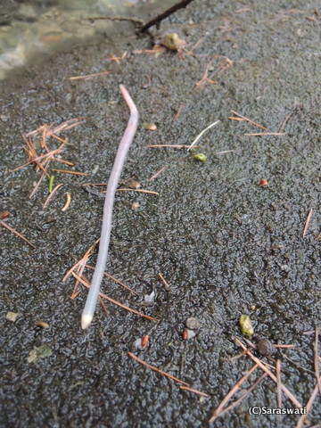 春だからかか雨だからか、蚯蚓(ミミズ)が地表に出てきて