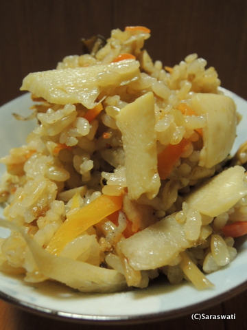 筍の刺身、焼き筍、筍の吸い物、春野菜と筍の炒め物、筍グリーンカレー、筍カレー、筑前煮、筍と春菊のWシュウ酸サラダ、筍の煮物・・・