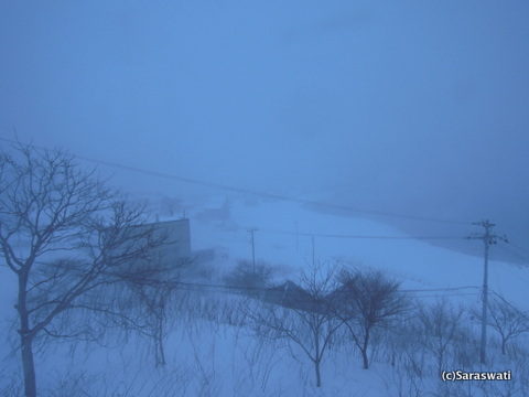 実際には真っ白な世界、視界ゼロのホワイトアウト状態です。