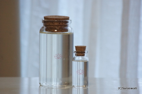 ボトルにはシールは貼らずにサラスワティのネックをつけてお送りします。使用後はお好きな用途でお使い下さい。
