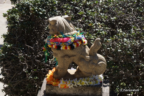 ハワイにもある神社『出雲大社』では、狛犬もアロハモード☆