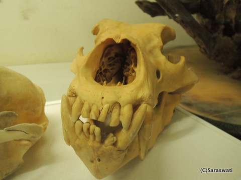 骨も黄色く古く、歯列も悪く中がスカスカ。子熊の骨は白で詰まっていました。