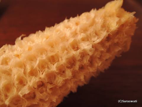 一列なくなっていれば、二列目からは前歯が実と実の間に入りますので、しっかり突っ込んでボロッとこそぎ取るように食べていきます。